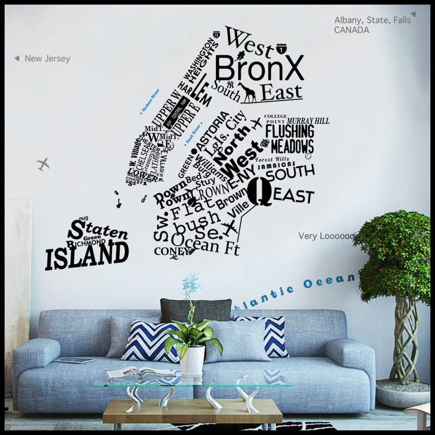 Nyc Wandaufkleber Im Verkauf 5 Borough Map In Worten Etsy Schweiz